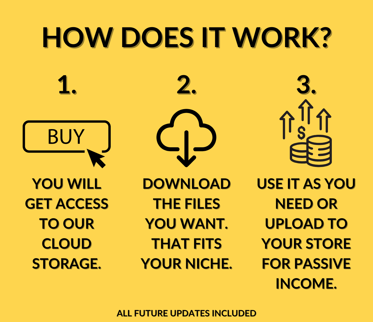 A: You get instant access to our cloud storage where you can download the files you want that fits your niche.